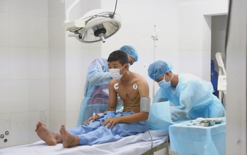 Sau gần 2 giờ phẫu thuật, sức khỏe của bệnh nhân đã dần ổn định, tiếp tục lưu trú tại đảo để được theo dõi và điều trị.