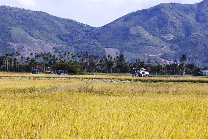Thu hoạch lúa tại huyện Diên Khánh. |
