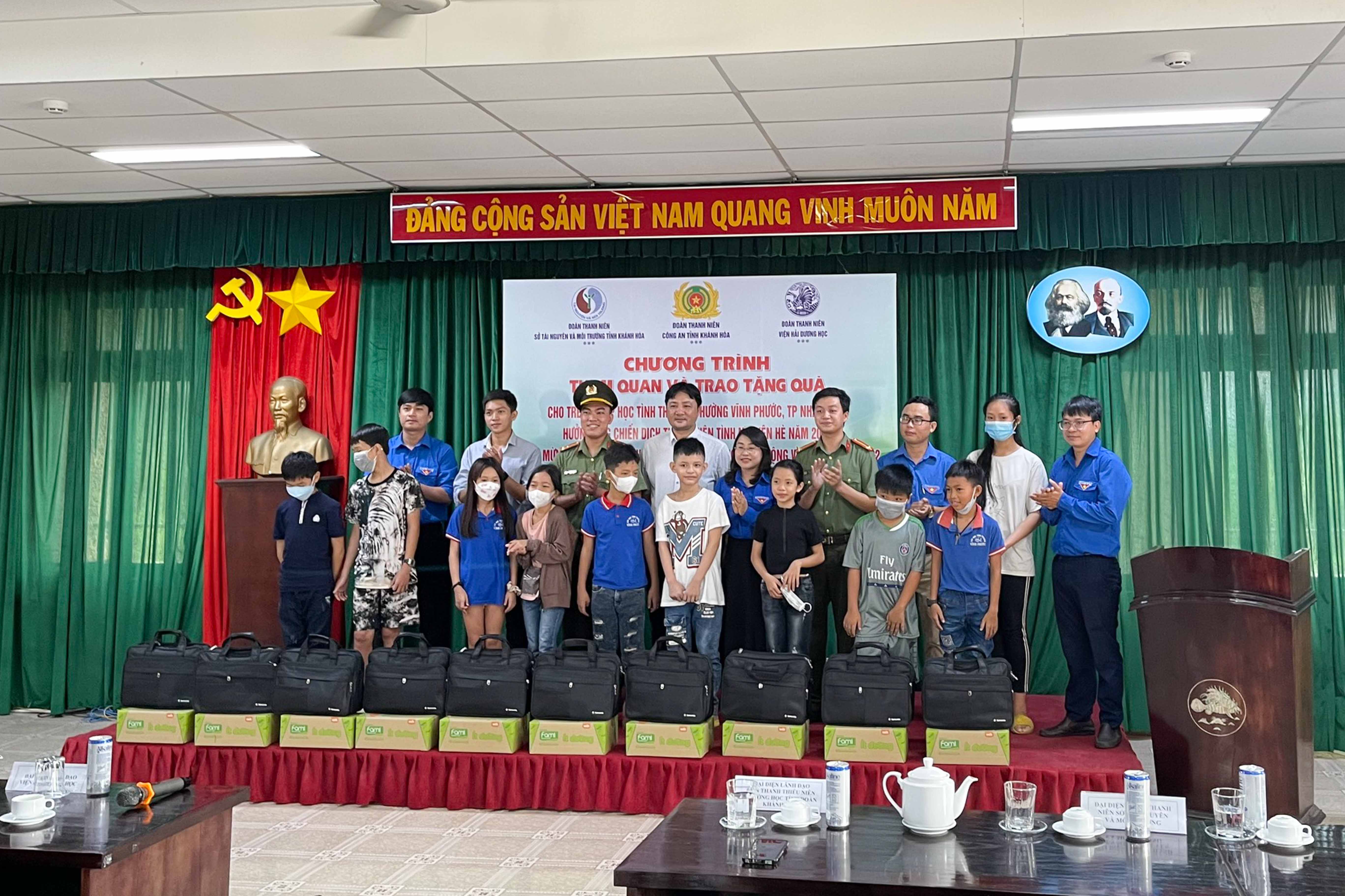 Ngày 29-5, Đoàn Thanh niên Công an tỉnh Khánh Hòa phối hợp cùng Đoàn Sở Tài nguyên và Môi trường, Chi đoàn Viện Hải dương học Nha Trang tổ chức chương trình thăm quan và trao quà cho học sinh của lớp học tình thương tại phường Vĩnh Phước (TP. Nha Trang).