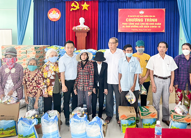 Theo đó, hưởng ứng Chương trình “Chia sẻ yêu thương” được UBMTTQ phường Vĩnh Hòa phối hợp với các hội đoàn thể trong phường vận động, hộ ông Phan Đăng Mười ở tổ 9 Hòa Bắc, Vĩnh Hòa, TP. Nha Trang đã chung tay, góp sức, chia sẻ với những hoàn cảnh còn khó khăn trên địa bàn phường bằng 100 suất quà, trị giá mỗi suất 500.000 đồng nhằm trợ giúp, động viên bà con sớm vượt qua khó khăn.