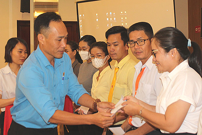 Dịp này, 3 cá nhân được nhận kỷ niệm chương “Vì sự nghiệp xây dựng tổ chức CĐ” của Tổng LĐLĐ Việt Nam; 8 tập thể nhận giấy khen của LĐLĐ huyện.
