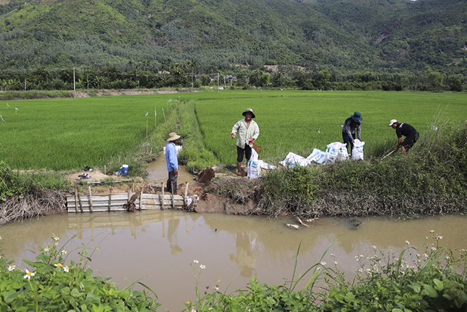 Theo ghi nhận của phóng viên chiều 18-7, tại khu vực tuyến kênh Cầu Đôi - Suối Dầu chảy qua địa bàn thôn An Ninh, các công nhân của Công ty TNHH Một thành viên Khai thác công trình thủy lợi Khánh Hòa (đơn vị quản lý và khai thác tuyến kênh) đang xúc đất vào các bao tải để gia cố một đoạn kênh bị sạt lở. Các công nhân cho biết, do nền đất ở khu vực kênh chủ yếu là đất cát nên việc sạt lở diễn ra thường xuyên. Đoạn chảy qua địa bàn thôn An Ninh có đến 5 điểm bị sạt lở; những năm qua, công nhân của công ty liên tục gia cố bằng các bao đất.