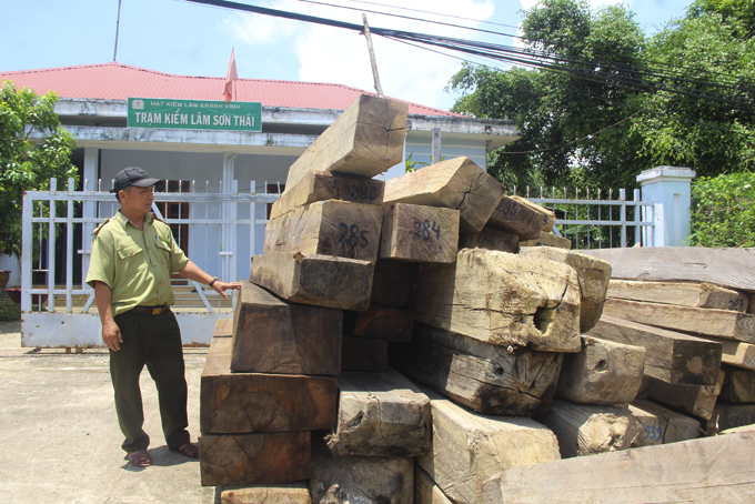 Thời gian qua, việc bảo quản tang vật vi phạm, nhất là gỗ và các phương tiện vi phạm tại Trạm Kiểm lâm Sơn Thái (Hạt Kiểm lâm Khánh Vĩnh) rất lớn, với hơn 100m3 gỗ các loại. Đây đều là tang vật vi phạm hành chính trong lĩnh vực lâm nghiệp mà đơn vị phát hiện, nhận bàn giao từ đơn vị chủ rừng qua các đợt tuần tra, truy quét nạn khai thác, mua bán, vận chuyển lâm sản trái phép diễn ra tại khu vực các xã cánh Tây của huyện Khánh Vĩnh. Trạm Kiểm lâm Sơn Thái đã phải tận dụng khuôn viên trạm, khu vực đất trống xung quanh trạm để tập kết, trông coi tang vật vi phạm vì không có nhà kho có mái che để bảo quản. Tương tự, tại Hạt Kiểm lâm Khánh Sơn, hơn 10m3 gỗ các loại, 2 xe ô tô là tang vật tịch thu, tạm giữ chờ xử lý theo quy định cũng phơi nắng, phơi mưa nhiều tháng nay do đơn vị không có nhà kho để bảo quản tang vật. Sau nhiều tháng nằm chỏng chơ ngoài trời, xe ô tô bị xuống cấp, hoen gỉ; gỗ tạm giữ bị nứt nẻ…