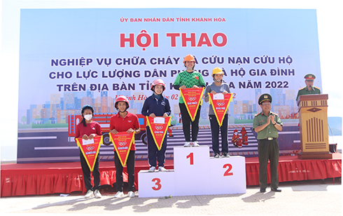 Sáng 2-10, tại Quảng trường 2-4, TP. Nha Trang đã diễn ra vòng chung kết hội thao nghiệp vụ chữa cháy và cứu nạn, cứu hộ dành cho lực lượng dân phòng và hộ gia đình trên địa bàn tỉnh Khánh Hòa năm 2022. Ông Nguyễn Anh Tuấn - Phó Chủ tịch UBND tỉnh Khánh Hòa đến dự.