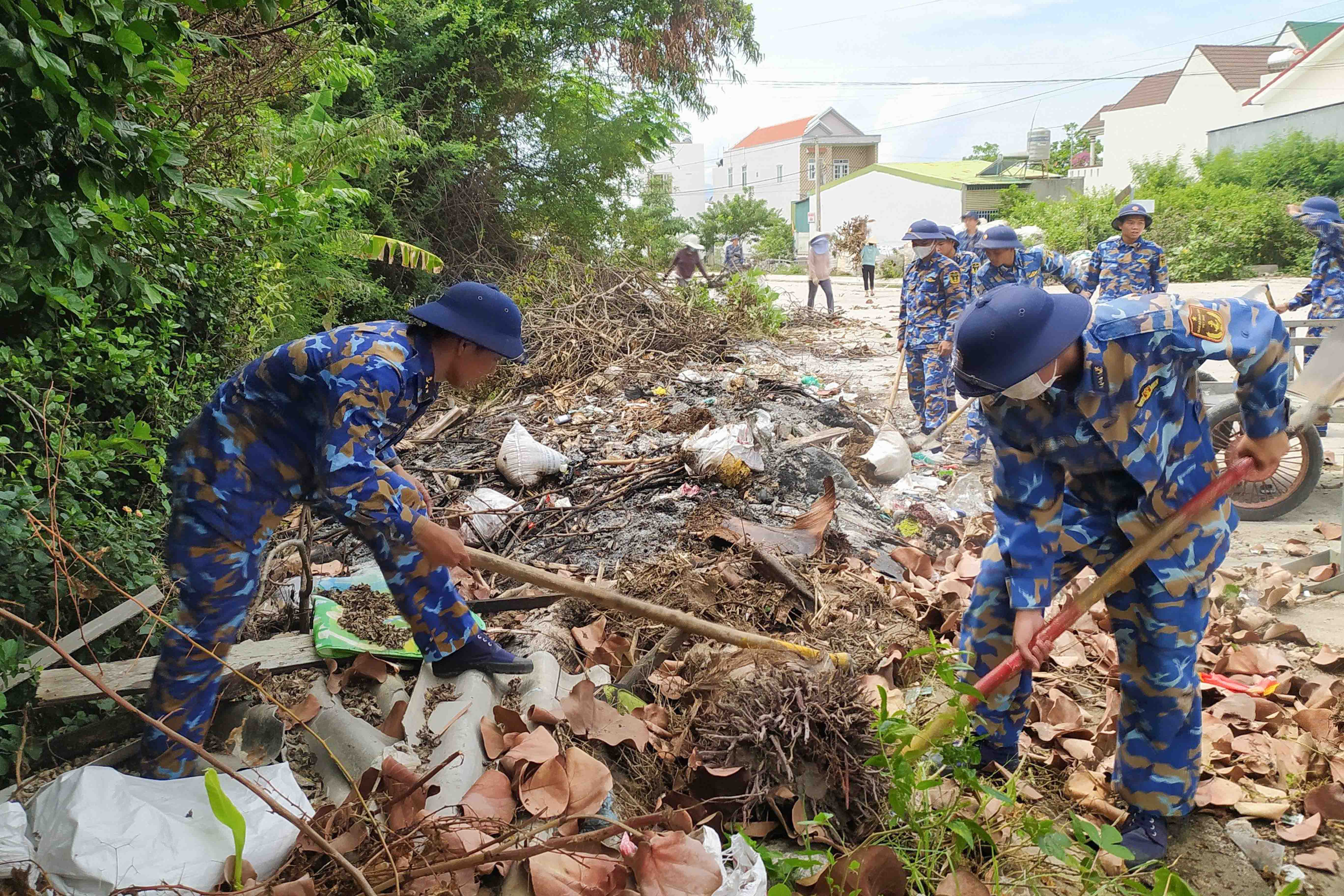 Ngày 1-10, hơn 50 cán bộ, đoàn viên, thanh niên của Lữ đoàn 146, Vùng 4 Hải quân đã phối hợp với các giáo viên Trường Mầm non Trường Sa (Phường Cam Nghĩa, TP. Cam Ranh) tổ chức hoạt động vệ sinh môi trường tại Trường Mầm non Trường Sa.