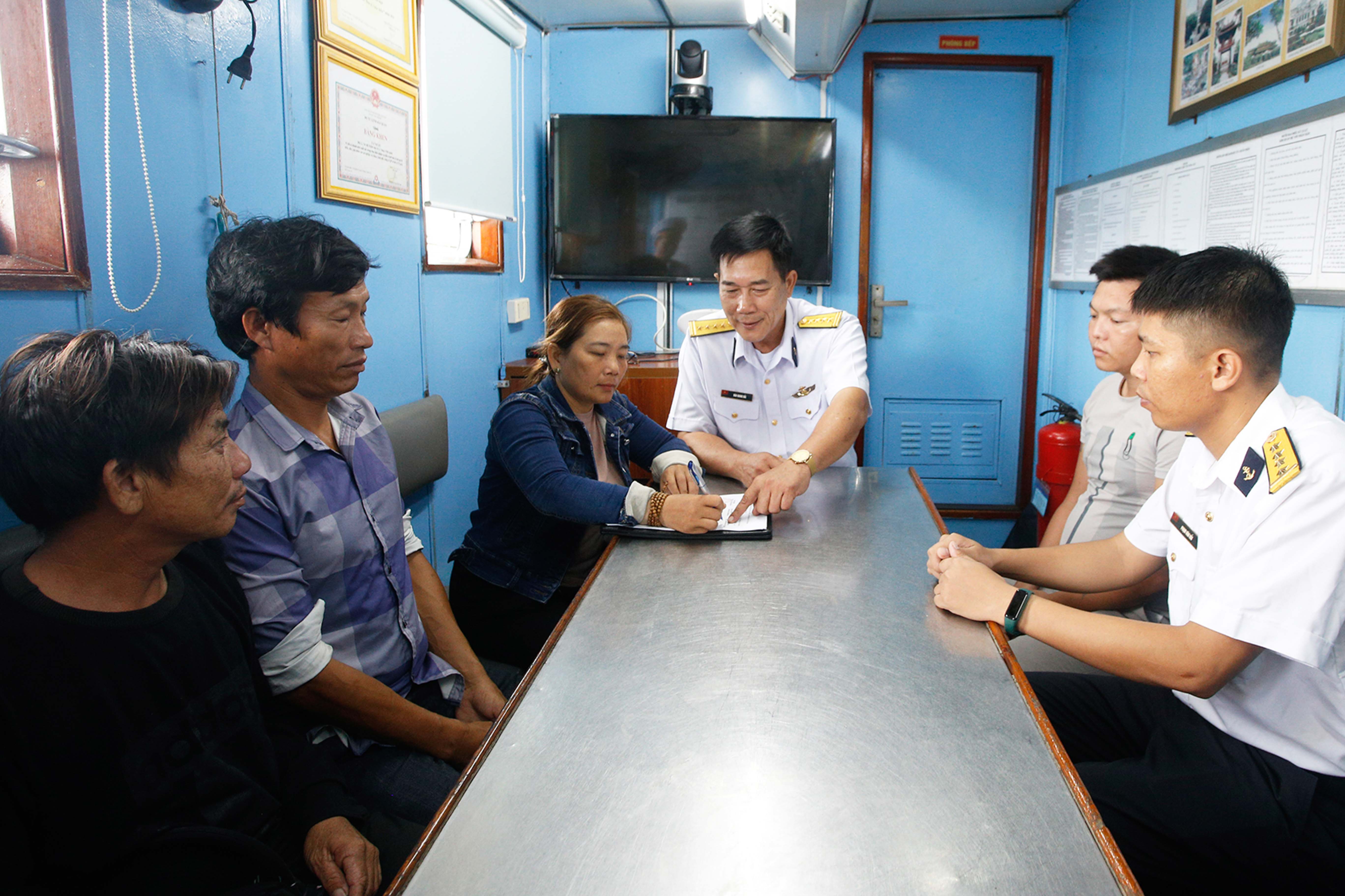 Đây là các ngư dân trên tàu cá QNg 90499 TS của tỉnh Quảng Ngãi, vào ngày 1-11, khi đang khai thác trên khu vực biển Trường Sa đã bị sóng đánh lật úp. Lúc gặp nạn, trên tàu có 11 người, trong đó 2 người mất tích, 9 người may mắn được tàu cá khác và cán bộ, chiến sĩ đảo Sơn Ca hỗ trợ, đưa về đảo vào ngày 6-11. Ngày 24-11, tàu 421 của Vùng 4 Hải quân được điều đến đảo tiếp nhận ngư dân và đưa về đất liền, bàn giao cho gia đình, địa phương.
