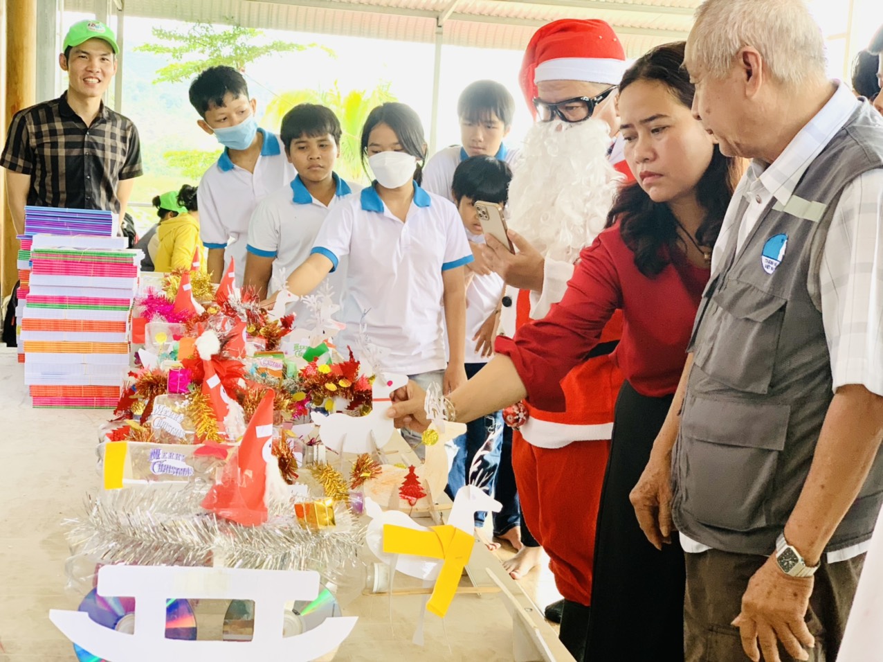 Theo đó, chương trình diễn ra với nhiều hoạt động sôi nổi nhằm mang đến mùa Giáng sinh ấm áp cho các em nhỏ có hoàn cảnh khó khăn như: tặng quà (gồm bánh, nước ngọt, vở,..), trải nghiệm “Xếp đá nghệ thuật”, tập huấn kỹ năng sống “Phòng, chống đuối nước khi đi qua suối” với tổng chi phí hơn 15 triệu đồng. Ngoài ra, tại chương trình, các em học sinh còn được nhóm STEAM Nha Trang hướng dẫn thiết kế xe tuần lộc giao quà Giáng sinh.