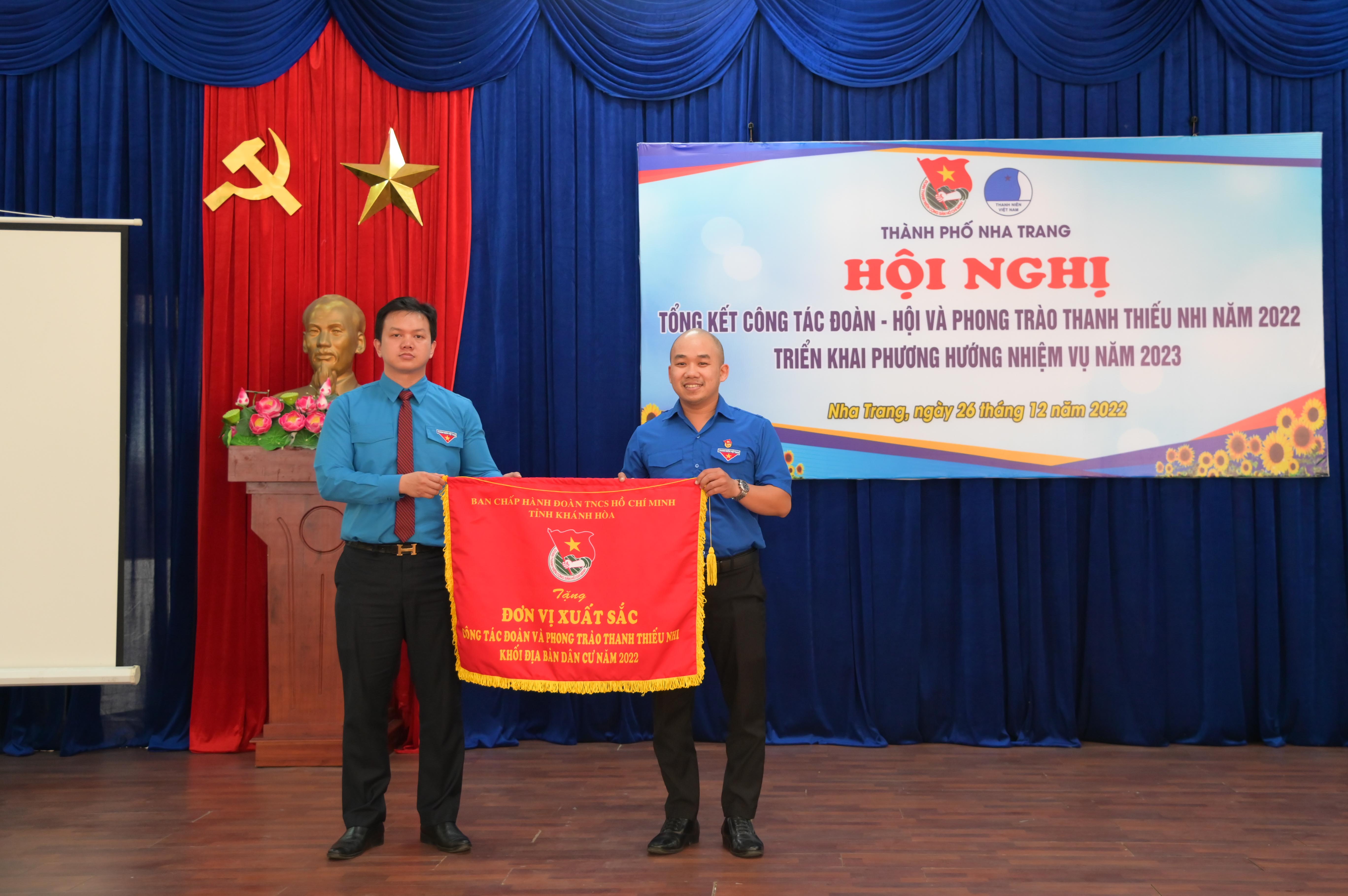 Dịp này, Tỉnh đoàn trao cờ thi đua xuất sắc trong công tác đoàn và phong trào thanh thiếu nhi khối địa bàn dân cư năm 2022 cho Đoàn phường Vạn Thắng; UBND TP. Nha Trang khen thưởng 7 tập thể, 10 cá nhân; Thành đoàn Nha Trang trao cờ thi đua cho 7 đơn vị xuất sắc dẫn đầu khối thi đua...