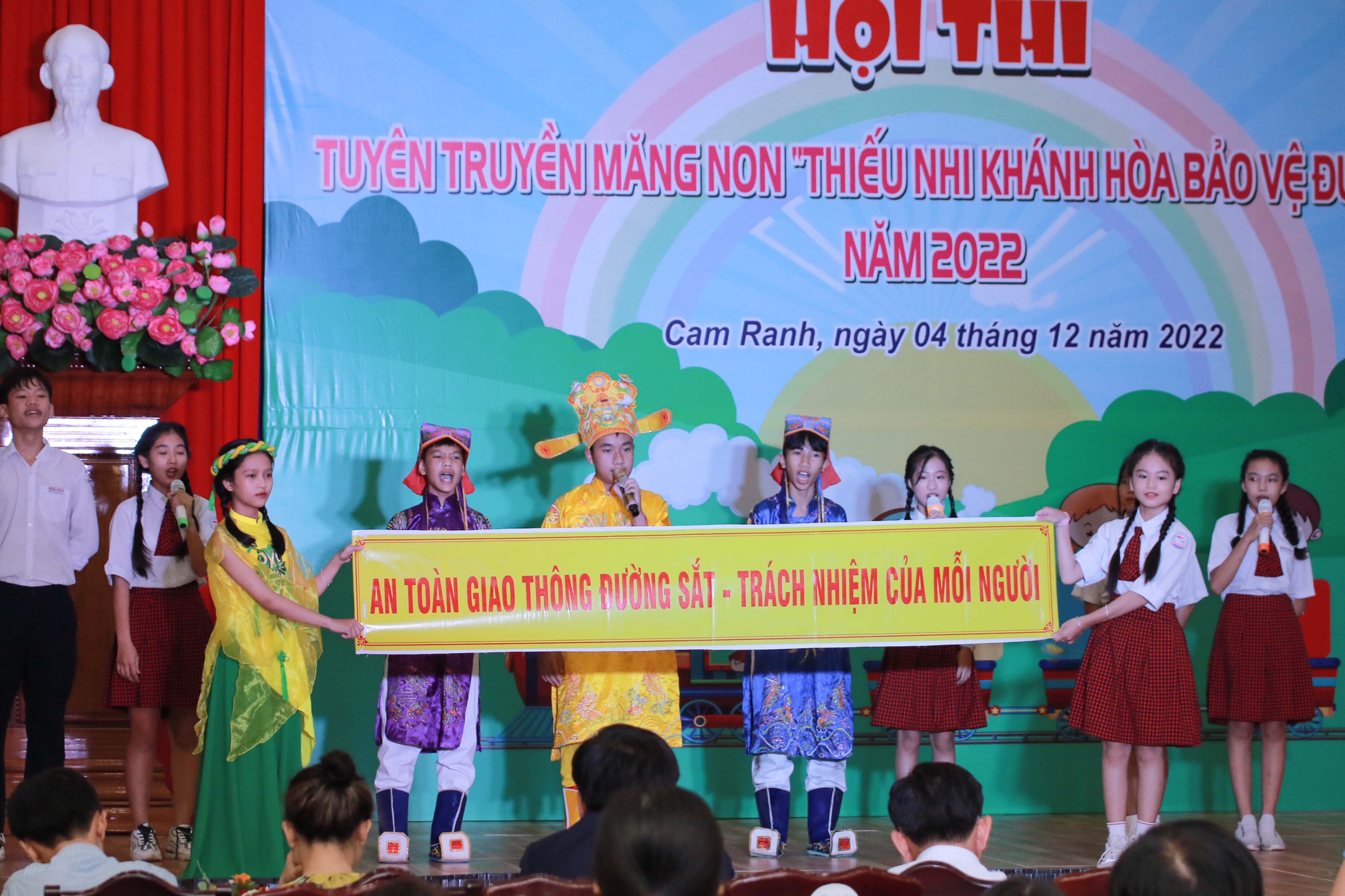 Ngày 4-12, tại TP. Cam Ranh, Tỉnh đoàn - Hội đồng Đội tỉnh Khánh Hòa phối hợp cùng Tổng Công ty Đường sắt Việt Nam tổ chức hội thi tuyên truyền măng non thiếu nhi Khánh Hòa bảo vệ đường sắt năm 2022.