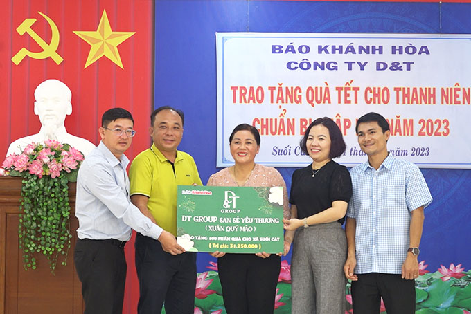 Sáng 11-1, ông Lê Hoàng Triều - Phó Tổng Biên tập Báo Khánh Hòa cùng lãnh đạo Công ty TNHH Sản xuất Thương mại Xuất nhập khẩu D&T thăm và tặng quà Tết cho thanh niên chuẩn bị nhập ngũ năm 2023 tại xã Suối Cát, huyện Cam Lâm.