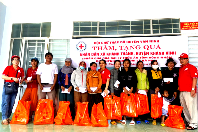 Hội Chữ thập đỏ huyện Vạn Ninh cùng Câu lạc bộ Nhân ái huyện tặng quà cho các gia đình có hoàn cảnh khó khăn ở xã Khánh Thành (huyện Khánh Vĩnh). |
