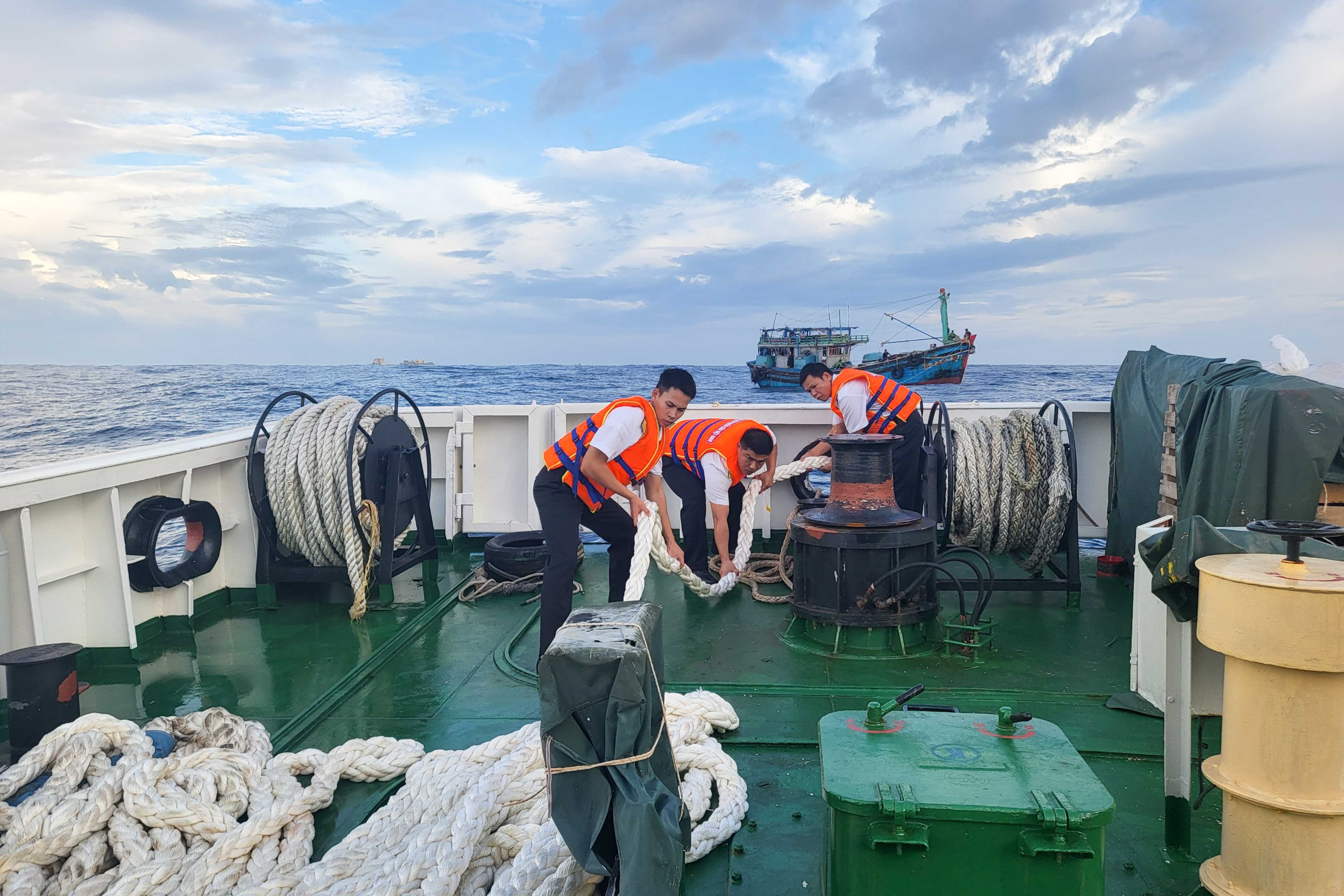 Vùng 4 Hải quân vừa tiến hành hỗ trợ lai dắt, bàn giao một tàu cá của tỉnh Bình Định cho cơ quan chức năng đảm bảo an toàn.