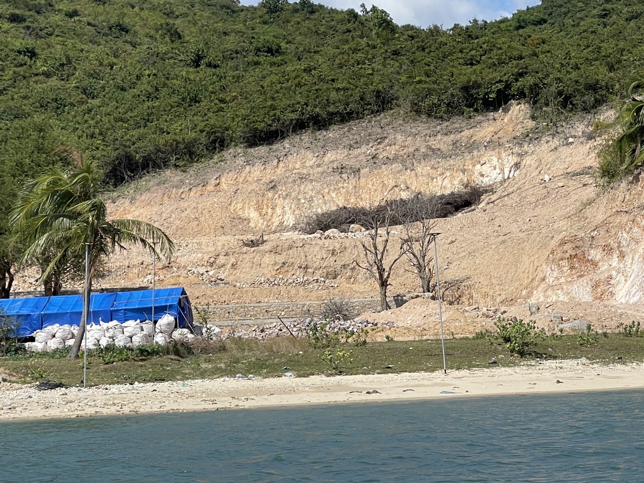 Theo ghi nhận vào ngày 23-2, vị trí san ủi trước đó và năm 2022 vẫn tiếp tục bị san ủi, làm bờ kè kiên cố. Một số phương tiện, xe ô tô đào chở đất và xây dựng được tập kết ngay trong khu đất và cạnh lán trại công nhân đang ở. Trước đó, vào tháng 10-2022, Báo Khánh Hòa đã có bài phản ánh tình trạng hàng nghìn m2 đất đồi tại đảo Điệp Sơn bị đào bới, san lấp, lấn chiếm làm ảnh hưởng cảnh quan, hệ sinh thái và làm phức tạp thêm tình hình, gây khó khăn cho công tác quản lý đất đai tại địa phương.