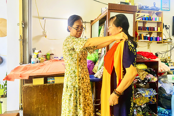 Bà Nguyễn Thị Mỹ Thanh (51 tuổi, phường Phước Long, TP. Nha Trang) là hội viên phụ nữ thuộc hộ có hoàn cảnh khó khăn của phường. Thời gian qua, nguồn thu nhập chính của gia đình chủ yếu dựa vào nghề may áo dài truyền thống của bà. Tháng 11-2021, thông qua Hội Phụ nữ phường, bà Thanh vay 50 triệu đồng từ nguồn vốn vay giải quyết việc làm của Ngân hàng Chính sách xã hội để kinh doanh tiệm may áo dài. “Với số tiền được vay, tôi nhập thêm nhiều loại vải may để tăng thêm sự lựa chọn cho khách hàng. Lúc trước, áo dài chỉ được may vào dịp tựu trường, Tết hay dịp kỷ niệm ngày Nhà giáo Việt Nam 20-11… Bây giờ, khách may quanh năm, nhiều cơ quan hoặc công ty cũng chọn áo dài làm đồng phục. Nhờ đó, mỗi tháng, tôi thu nhập từ 4 đến 5 triệu đồng, cuộc sống ổn định hơn” - bà Thanh cho biết.