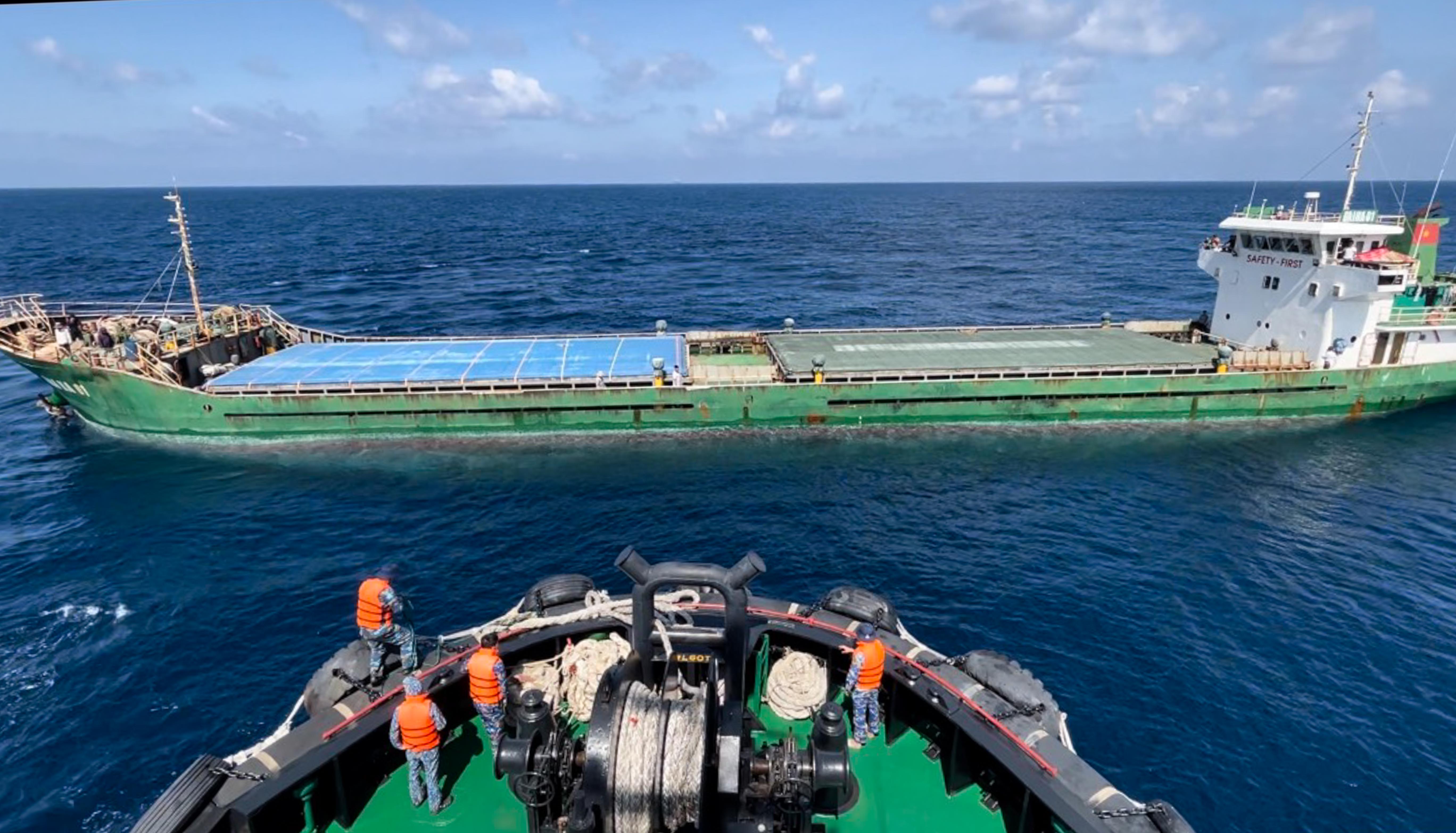 Khoảng 15 giờ 40 phút chiều 15-2, tàu 991 thuộc Hải đội 418, Lữ đoàn Tàu ngầm 189 Hải quân đã lai kéo một tàu hàng có trọng tải 3.000 tấn cùng 36 thuyền viên về Cảng Quốc tế Cam Ranh an toàn.