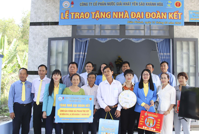 Chào mừng kỷ niệm 370 năm xây dựng và phát triển tỉnh, 48 năm giải phóng tỉnh Khánh Hòa, ngày 21-3, Công ty Cổ phần Nước giải khát Yến sào Khánh Hòa làm lễ trao tặng 3 căn nhà đại đoàn kết cho 3 hộ gia đình có hoàn cảnh khó khăn xã Diên Đồng, huyện Diên Khánh.