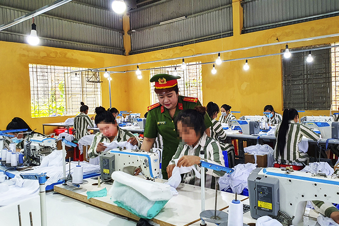 Tại các phân trại của Trại giam A2, ngoài xưởng giặt sấy, còn có xưởng may, các khu vực để phạm nhân học nghề đan, làm mi mắt giả, bóc vỏ hạt điều... Cách không xa phân xưởng giặt sấy là xưởng may do Thượng úy Lê Thị Vân Anh phụ trách. Đến nay, chị đã có thâm niên công tác tại trại giam gần 10 năm. Cũng như các đồng nghiệp nữ khác, chị luôn có những phương pháp giáo dục, cảm hóa tạo được nhiều thiện cảm, sự tôn trọng của những phạm nhân đã và đang chấp hành án tại trại. “Mỗi khi chứng kiến một phạm nhân nào đó có sự tiến bộ, trong lòng tôi cảm thấy ấm áp, yên tâm hơn”, chị Vân Anh cho biết.