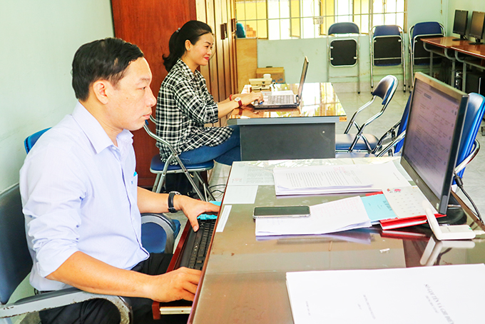 Các thầy cô Trường THCS Thái Nguyên thực hiện giảng dạy trực tuyến. |