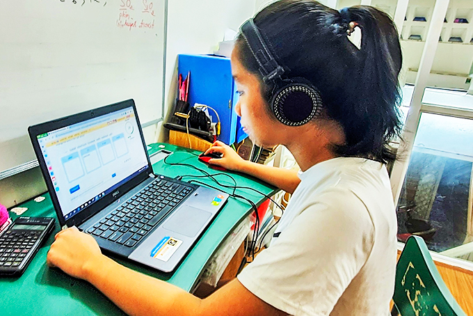 Học sinh Trường THCS Võ Thị Sáu học trực tuyến. |