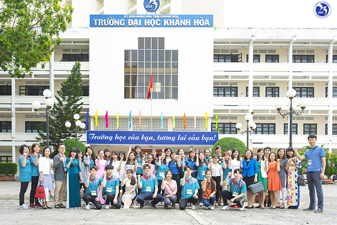 Cán bộ, giảng viên, sinh viên Trường Đại học Khánh Hòa chụp ảnh lưu niệm cùng giảng viên, sinh viên Hàn Quốc. Ảnh: Hoài văn |