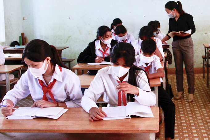 Một tiết học của học sinh Trường THCS Lê Văn Tám (huyện Khánh Vĩnh). |