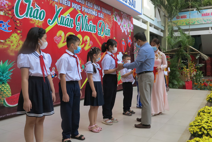 Sáng 24-1, trường Tiểu học Phương Sài, TP. Nha Trang tổ chức hoạt động ngoại khóa với chủ đề “Mừng xuân Nhâm Dần – Mừng Đảng quang vinh năm 2022”. Chương trình gồm các hoạt động như văn nghệ, tổng kết hoạt động trang trí lớp mừng xuân, trao quà cho học sinh nghèo hiếu học năm học 2021 – 2022…