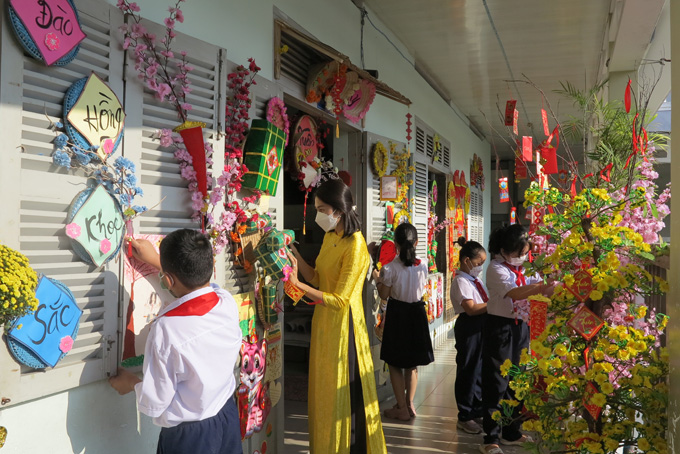 trang trí lớp mừng xuân Nhâm Dần thu hút sự tham gia của đông đảo giáo viên và học sinh.