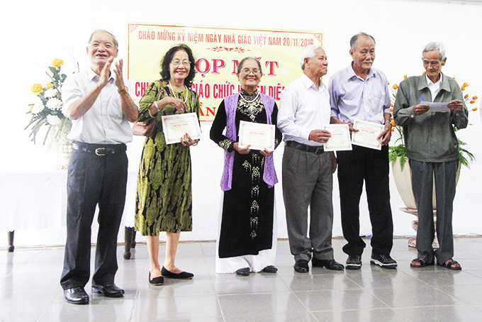 Hội Cựu giáo chức huyện Diên Khánh mừng thọ các nhà giáo lão thành. |