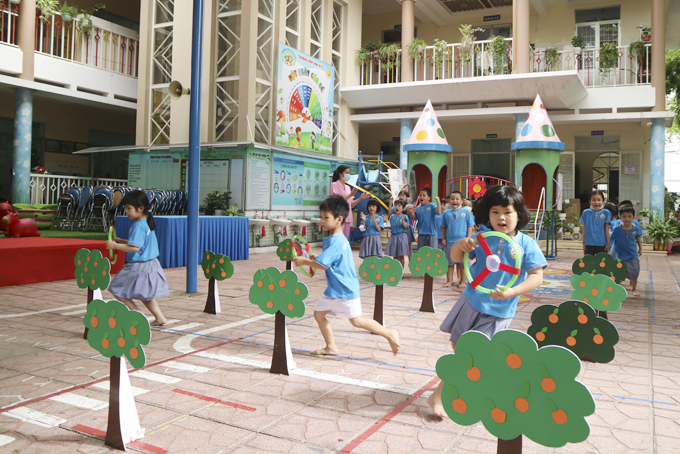 Các bé Trường Mầm non 8-3 (TP. Nha Trang) tham gia hoạt động thể chất. |