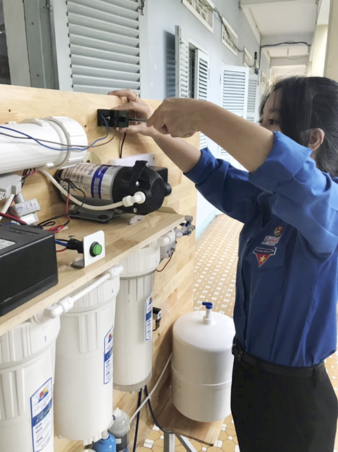Nhờ sự giúp đỡ tận tình của thầy Nguyễn Thanh An - cử nhân hóa học của trường, giải pháp “Hệ thống lọc nước R.O và điện phân tạo nguồn nước hydrogen” đã được các em tìm hiểu, nghiên cứu trong 6 tháng và thực nghiệm thành công tại Trường THPT Huỳnh Thúc Kháng.