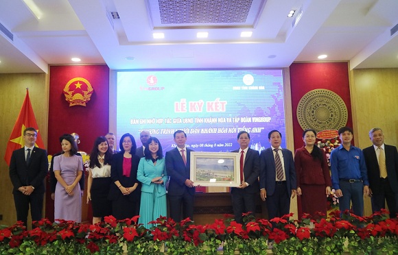 Sáng 8-8, UBND tỉnh Khánh Hòa tổ chức lễ ký kết biên bản ghi nhớ hợp tác với Tập đoàn Vingroup về chương trình "Người dân Khánh Hòa nói tiếng Anh".