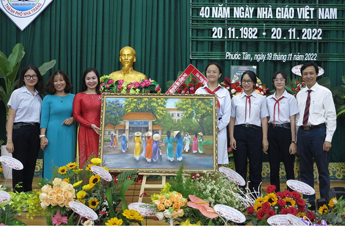 Chiều 19-11, Trường THCS Âu Cơ (TP. Nha Trang) tổ chức lễ kỷ niệm 40 năm ngày Nhà giáo Việt Nam (20-11-1982 - 20-11-2022).