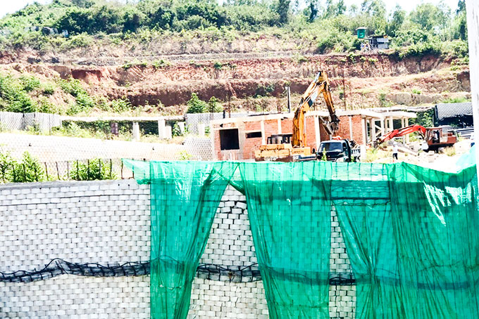 Công ty TNHH Đồi Xanh Nha Trang tự tháo dỡ các căn biệt thự đã xây ở phía trên bức tường chắn. |