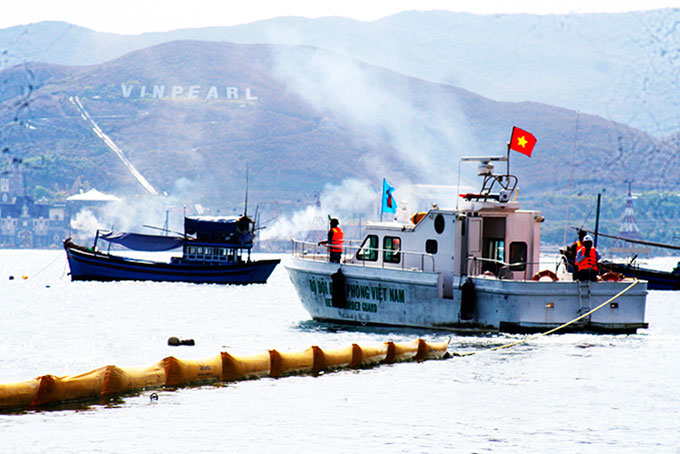 Công ty Xăng dầu Phú Khánh tổ chức diễn tập ứng phó tràn dầu trên vịnh Nha Trang. |