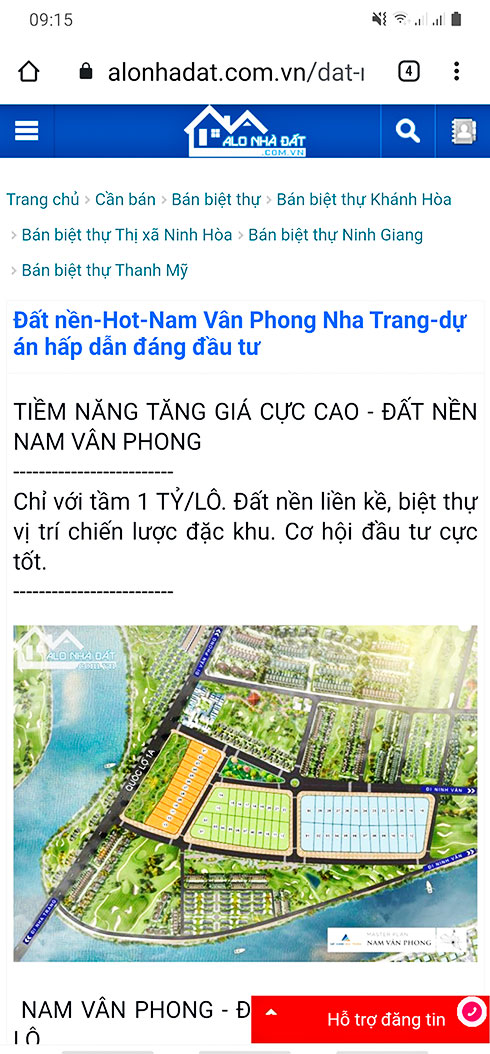 Ngày 2-11, trên trang https://alonhadat.com.vn đăng tải thông tin về dự án Khu đô thị mới Nam Vân Phong ở đường Thanh Mỹ, tổ dân phố Thanh Châu (phường Ninh Giang, thị xã Ninh Hòa), trong đó có rất nhiều lời chào mời hấp dẫn về giá cả, vị trí, cơ sở hạ tầng, tiện ích công cộng, giấy tờ pháp lý, hình thức thanh toán… Liên hệ với nhân viên tư vấn, chúng tôi được thông tin đây là dự án do thị xã triển khai và sàn giao dịch bất động sản (BĐS) có uy tín thực hiện phân phối nên khách hàng hoàn toàn yên tâm để đầu tư vào dự án này. Tuy nhiên, khi chúng tôi liên hệ ông Nguyễn Bá Thuận - Phó Chủ tịch UBND thị xã Ninh Hòa để xác minh thông tin thì được khẳng định trên địa bàn thị xã và phường Ninh Giang không có dự án này, chỉ có một diện tích đất tái định cư cho các hộ bị ảnh hưởng bởi dự án xây dựng trụ sở UBND phường Ninh Giang. “Đây không phải là trường hợp đầu tiên đưa thông tin về “dự án ma” trên địa bàn thị xã qua các trang thông tin điện tử. Người dân cần cảnh giác trước những thông tin trên”, ông Nguyễn Bá Thuận cảnh báo.