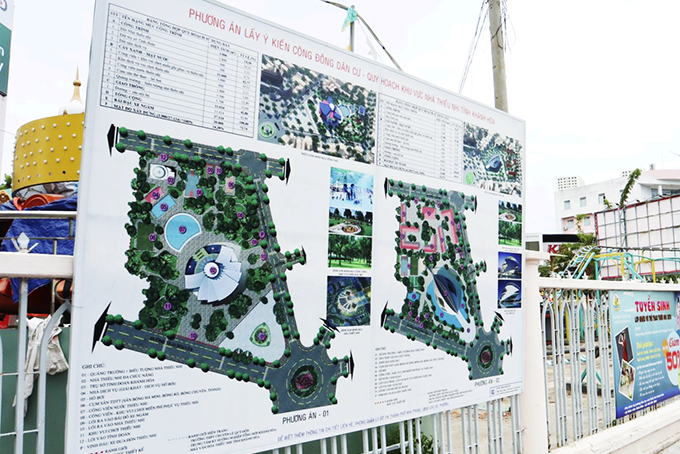 Từ ngày 20-8 đến 20-9, UBND thành phố Nha Trang tổ chức lấy ý kiến cộng đồng dân cư về phương án đề xuất quy hoạch khu vực Nhà Thiếu nhi tỉnh. Trung tâm Quy hoạch và kiểm định xây dựng (Sở Xây dựng) đưa ra 2 phương án để các cơ quan chức năng và cộng đồng dân cư có sự so sánh, góp ý, lựa chọn.