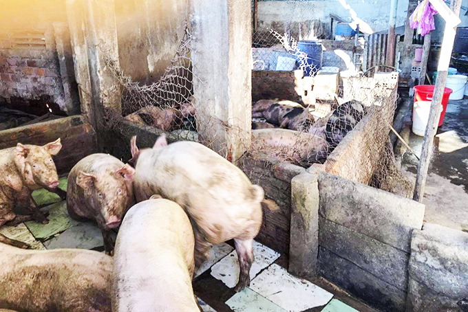 Đàn heo của gia đình bà Còn chăn nuôi gây ô nhiễm khu dân cư. |
