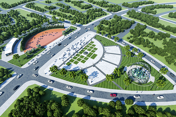 Mô phỏng dự án Quảng trường thị xã Ninh Hòa trên đường 2-4. |