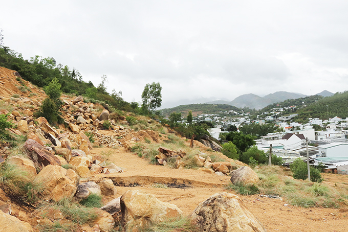 Khi tiến hành kiểm tra, Phòng QLĐT phát hiện, bà Hạnh sau khi dọn dẹp các tảng đá mồ côi nguy hiểm, tiếp tục dùng máy đào để múc đất, đá tạo mặt bằng giật cấp từ dưới chân núi đến đỉnh núi, xếp đá kè cao 3m. Đồng thời, chuyển đá tảng (không phải đá mồ côi) trên sườn núi xuống dưới tạo mặt bằng. Với những sai phạm này, Phòng QLĐT đã tham mưu UBND TP. Nha Trang yêu cầu bà Hạnh chấm dứt việc thi công, dọn đá tại khu vực nói trên và bàn giao cho UBND xã Vĩnh Ngọc lập hồ sơ xử phạt về hành vi làm biến dạng địa hình. Bà Hạnh đã dừng toàn bộ việc di dời, vận chuyển đá và giữ nguyên hiện trạng tại khu vực trên.