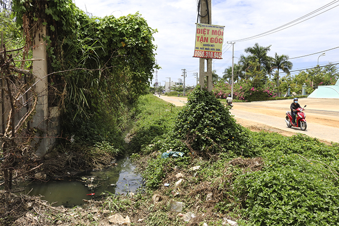 Mương thoát nước thải lộ thiên, xuống cấp trên đường Mai Thị Dõng. |