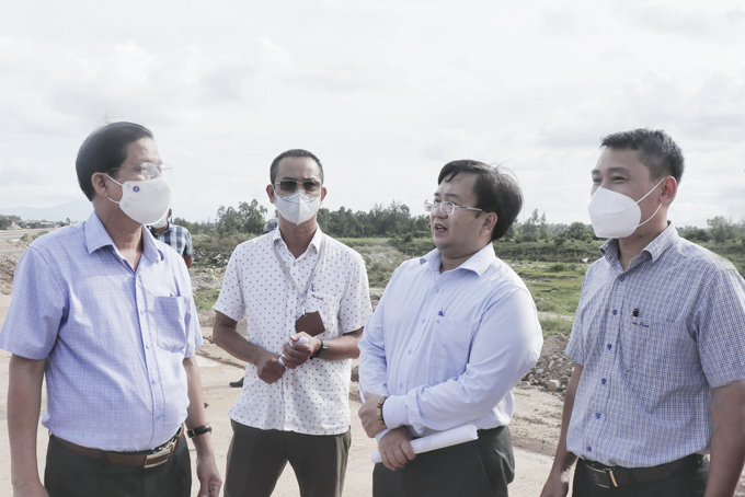 Ông Nguyễn Tấn Tuân kiểm tra dự án. |
