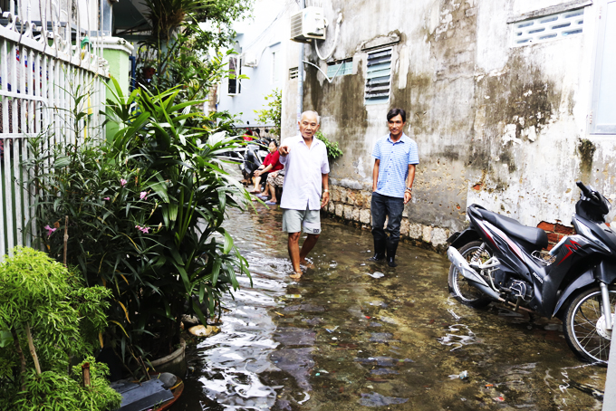 Nhà ông Nguyễn Văn Bình luôn trong tình trạng ngập vào mùa mưa. |