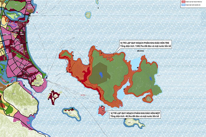 Khu vực đảo Hòn Tre - đảo Hòn Một cách cảng Nha Trang 3km về phía đông nam. Phạm vi nghiên cứu gồm toàn bộ khu vực đảo và mặt nước liền kề tính từ mép nước ra khoảng 100m. Đối với đảo Hòn Tre, diện tích lập quy hoạch gần 1.350ha đất đảo. Đối với đảo Hòn Một, diện tích lập quy hoạch khoảng 48,3ha đất đảo. Diện tích mặt nước liền kề của 2 hòn đảo này sẽ được nghiên cứu cụ thể trong giai đoạn lập đồ án quy hoạch, căn cứ vào phương án quy hoạch đối với các khu vực có sử dụng mặt nước. Đảo Hòn Tre và đảo Hòn Một sẽ được quy hoạch là trung tâm đô thị du lịch và quần thể sinh thái, nghỉ dưỡng, vui chơi giải trí, hội nghị, hội thảo tiêu chuẩn quốc tế trên cơ sở bảo tồn và phát huy thế mạnh về môi trường, cảnh quan tự nhiên. Đồng thời, là khu đô thị có yếu tố văn hóa, dân cư hiện hữu, song song với các khu ở mới được phát triển hài hòa trong không gian du lịch biển đảo. Quy hoạch lần này sẽ khai thác tối đa đặc điểm địa hình, điều kiện tự nhiên của khu vực, xây dựng diện mạo, cảnh quan đô thị du lịch biển đảo, tạo không gian điểm nhấn cảnh quan đô thị trong khu vực đảo vùng vịnh Nha Trang; xây dựng quần thể đảo thành trung tâm đô thị du lịch hiện đại, cao cấp trên cơ sở hài hòa với môi trường cảnh quan tự nhiên và địa hình khu vực.