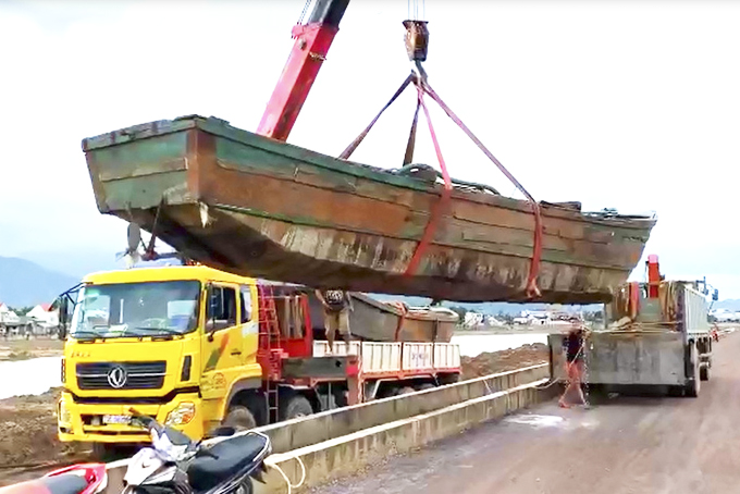 Công an TP. Nha Trang tiến hành tạm giữ một ghe hút cát trái phép. |