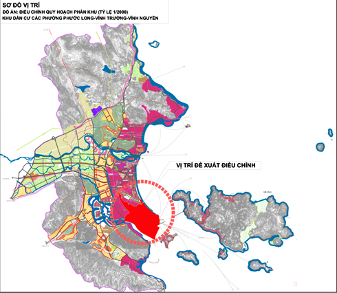 Sơ đồ vị trí điều chỉnh quy hoạch phân khu Khu dân cư các phường Phước Long - Vĩnh Trường - Vĩnh Nguyên. |