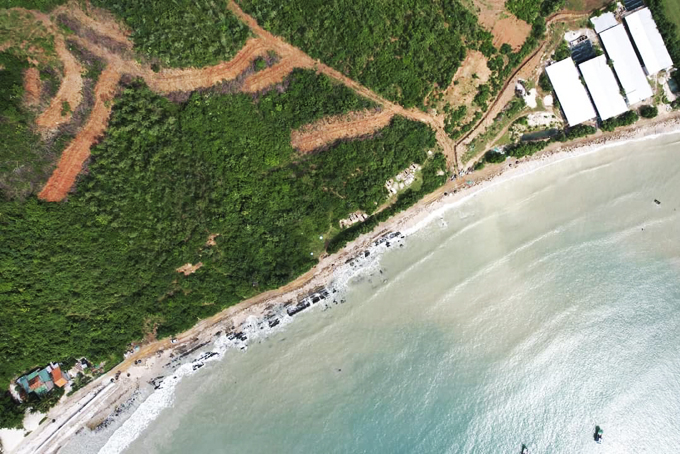 Qua tìm hiểu của chúng tôi, việc mở đường hình xương cá lên đỉnh núi Cấm để cải tạo đất có 2 vị trí nằm trong dự án Khu du lịch Dốc Lết - Phương Mai do Công ty Cổ phần Phương Mai làm chủ đầu tư, còn lại 1 vị trí trên đỉnh núi Cấm do UBND phường Ninh Hải quản lý.