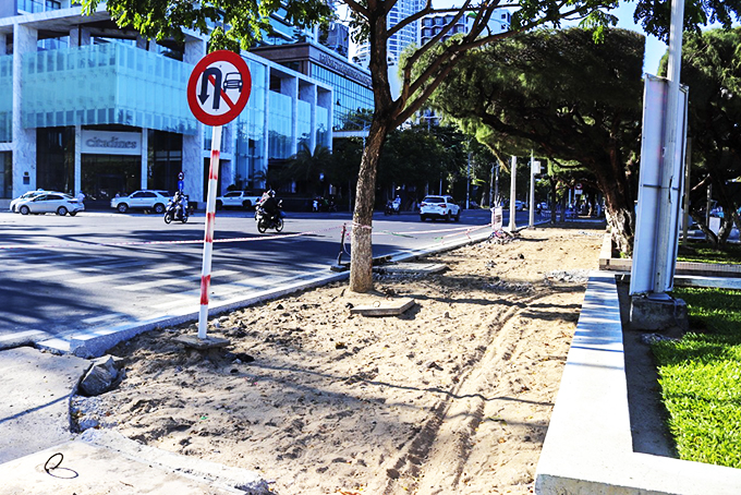 Khu vực triển khai thi công nâng cấp vỉa hè, bó vỉa đường Trần Phú. |