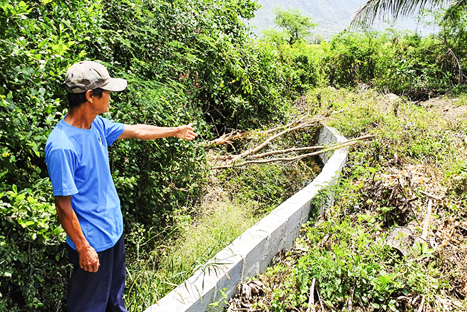 Dẫn chúng tôi đến hiện trường, anh N., một người dân địa phương (xin giấu tên) cho biết, từ nhiều năm nay, mương nước phục vụ tưới tiêu cho các thửa ruộng trong thôn. Cạnh mương nước còn có con đường mòn có thể sử dụng xe bò, chở lúa trong mùa gặt. Thế nhưng, từ đầu tháng 12-2021, chủ đất đã ngang nhiên cho thợ tới xây bức tường lấn chiếm ra giữa con mương. Tại hiện trường, tường gạch được xây chắc chắn, chạy dọc theo con mương.