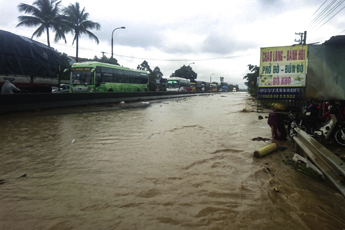 Một số vị trí dọc Quốc lộ 1 qua địa bàn huyện Cam Lâm thường xuyên bị ngập nước mỗi mùa mưa lũ. |