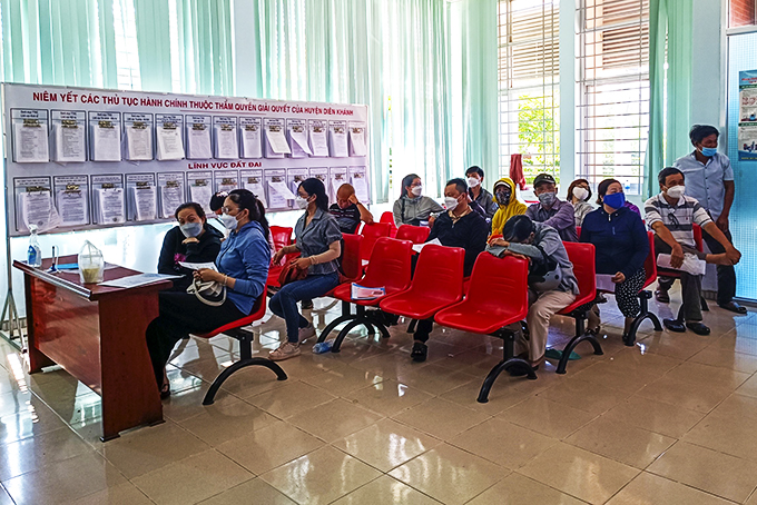 Người dân chờ đợi làm thủ tục tại bộ phận một cửa huyện Diên Khánh. |